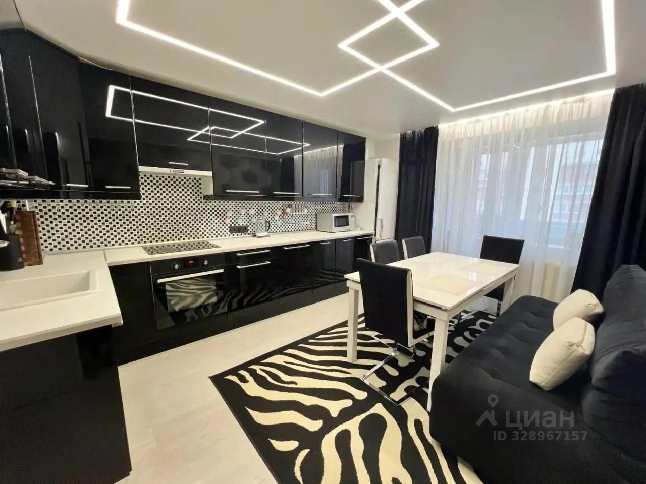 Встроенная техника европейского производства остается новым владельцам: холодильник и стиральная машина Indesit (Германия), индукционная панель и духовой шкаф Electrolux, микроволновая печь Panasonic.