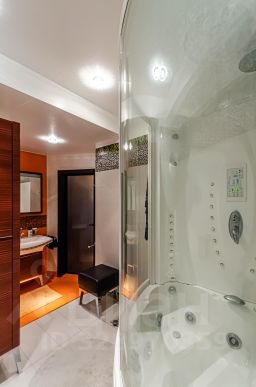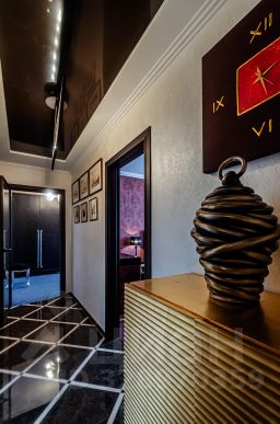 Ремонт выполнен в классическом стиле Арт-деко с применением высококлассных зарубежных отделочных материалов, сантехники Villeroy & Boch, итальянских межкомнатных дверей, смонтирована система центрального пылесоса, установлены мраморные подоконники, встроенная техника Mille (свч-печь, встроенная кофемашина, эл.плита, духовой шкаф, эл. гриль, посудомоечная машина), кондиционеры Daikin, свет люстры и светильники Swarovski, домашний кинотеатр.