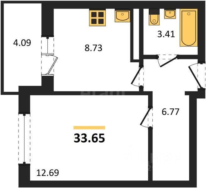 Уютная однокомнатная квартира 33,65 м² в строящемся доме
