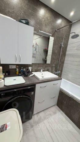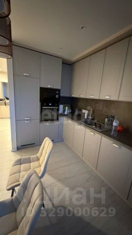 Кухня современная, оборудована встроенной техникой, включая холодильник и посудомоечную машину. Обеденная зона оформлена стильными стульями и обеденным столом. Ванная комната совмещенная, выполнена в современном стиле с качественной сантехникой и стиральной машиной.