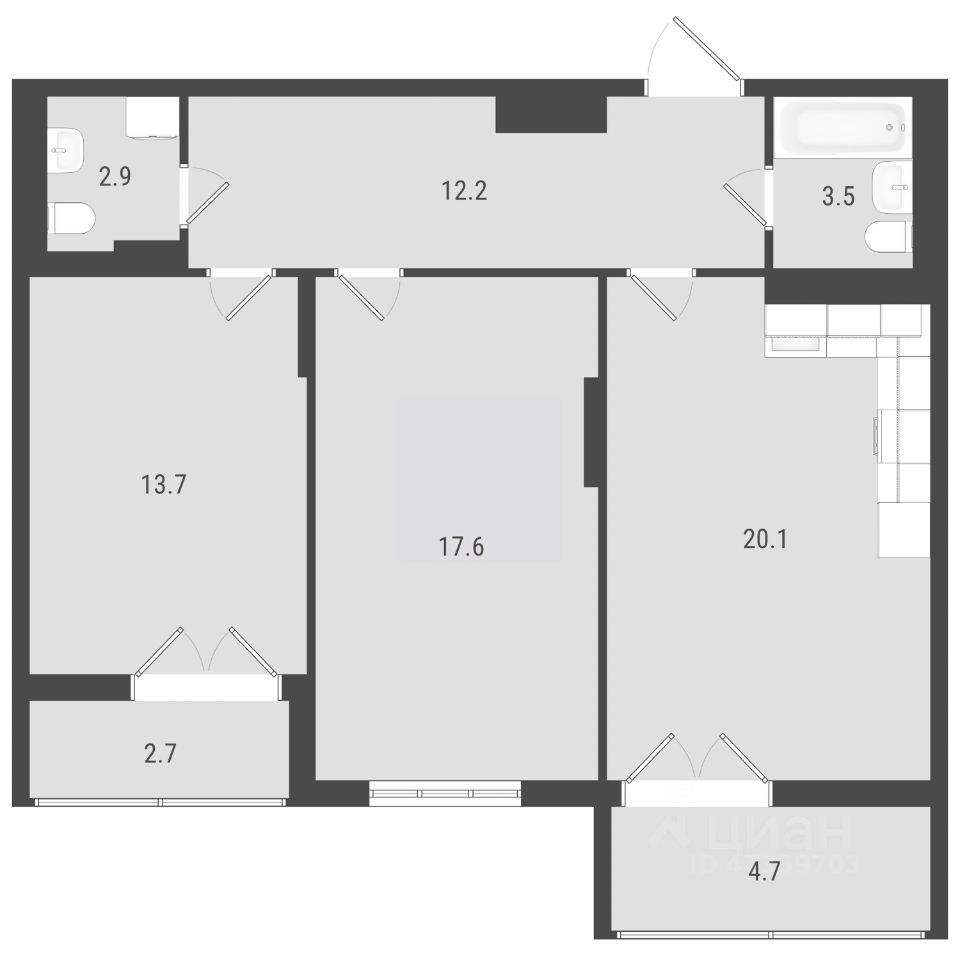 НОВАЯ умная планировка АМГРАД. Квартира эксклюзивно представлена в доме 5. Эта просторная 2-комнатная увеличенной площади с функционалом 3-комнатной подойдет для любого сценария жизни. Для вашего комфорта предусмотрены две раздельные жилые комнаты и кухня-гостиная с просторной остекленной лоджией. Детскую можно организовать в любой комнате на ваш выбор, в зависимости от количества детей и их потребностей. Планировкой предусмотрено два санузла, в них достаточно места, чтобы установить стиральную машину и организовать хранение. Выход на лоджию с распашными дверями расположен в кухне, а также в жилой комнате. Это дополнительное функциональное пространство, которое в теплое время года может стать кабинетом, мини-спортзалом, местом для отдыха и сезонного хранения. Начиная с 19-го этажа и выше в квартире увеличенная высота потолков - 2,76 м! Окна квартиры выходят в благоустроенный закрытый двор.