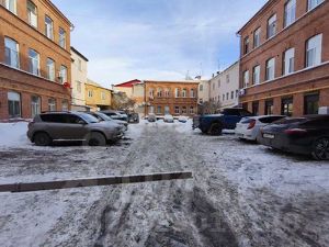 Придомовая территория закрыта и оборудована шлагбаумом, во дворе организована парковка.