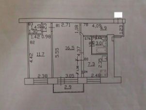 Квартира имеет комфортную планировку: кухня 7,3 кв.м., жилые комнаты 16,5 и 11,7 изолированы, санузел совмещенный, есть гардеробная (типовая кладовка)1,4 кв.м. и балкон 2,9 кв.м..