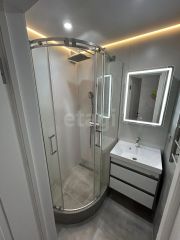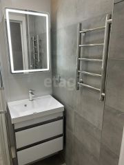 Ванная комната: Выполнена в стиле "лаконичный люкс". Новая разводка труб, качественная плитка в ванной и туалете, установлена новая сантехника (душевая кабина, унитаз, раковина, полотенцесушитель).использованием керамогранита и скрытых люков ревизии.