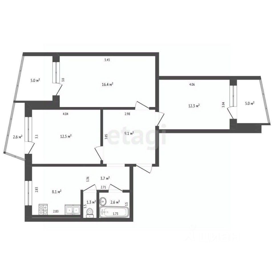 Жилая площадь: 41,2 м2 — три изолированные комнаты, где каждый член семьи найдёт свой уголок.
