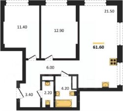 61,6 м²