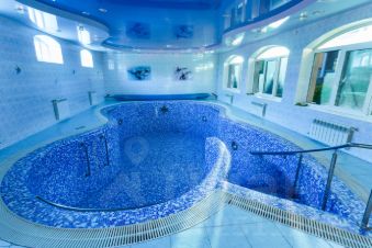 В гостевом доме находится баня бассейн, кухня и спальни и все удобства для гостей.