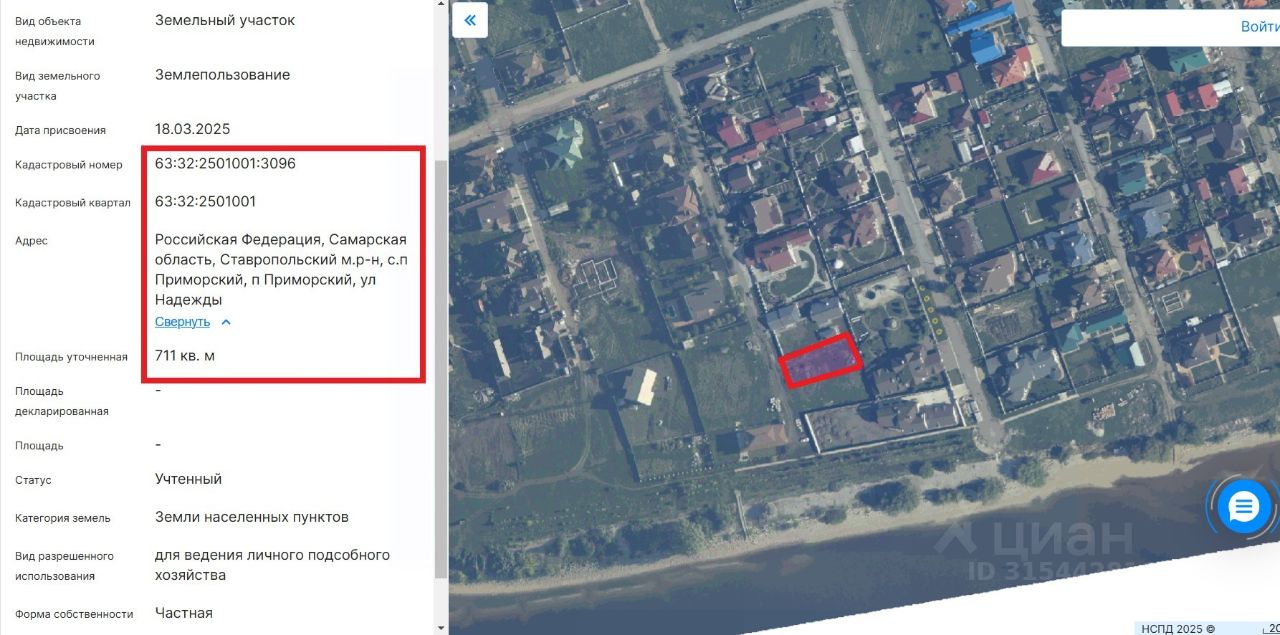 Кадастровый номер участка 63:32:2501001:*** указал продавец