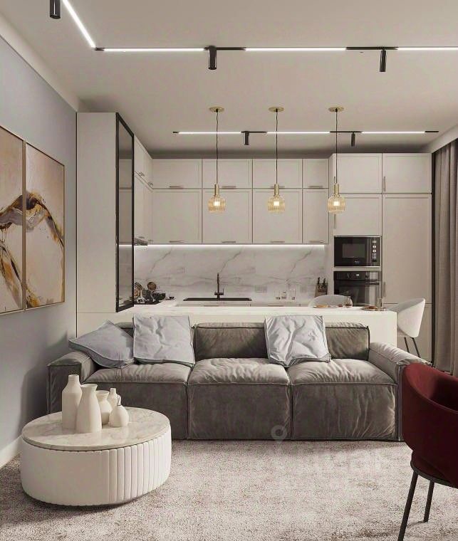 Просторная кухня-гостиная со вторым выходом на террасу.