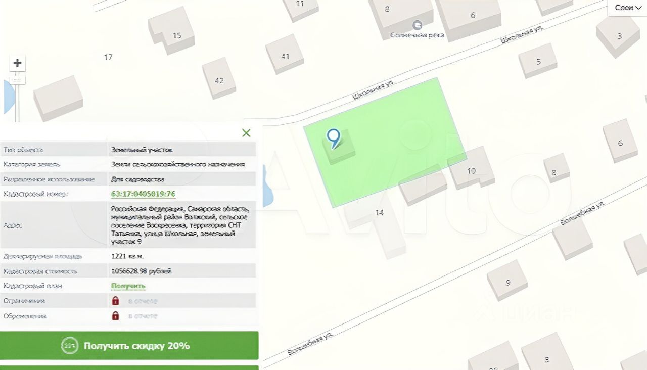 Участок правильной формы, соседи только с двух сторон. Размер участка по документам — 12 соток, но по факту 18. Прямо напротив частная Вальдорфская школа!