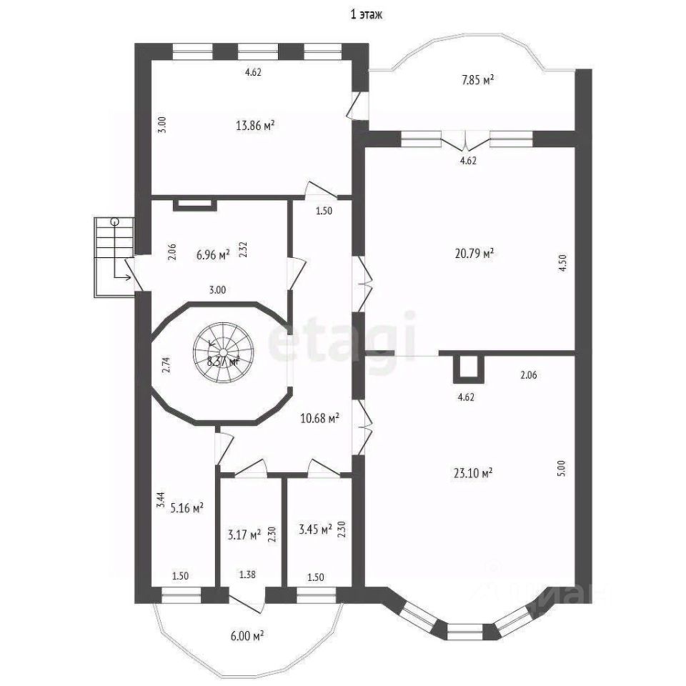 Здание выполнено в четырех уровнях с продуманной планировкой. На цокольном этаже расположены сауна, санузел, душ, спортзал, комната отдыха и котельная (Есть возможность переоборудовать в бассейн вместо спортзала). Первый этаж включает просторную прихожую, оборудованную кухню, большую гостиную и санузел. На втором этаже — две спальни с видом на Волгу, одна из которых имеет балкон и гардеробную, а также ванную комнату с естественным освещением. Третий этаж предлагает свободную планировку, что позволяет адаптировать пространство под кабинет, дополнительную спальню или зону отдыха.