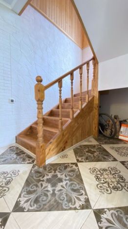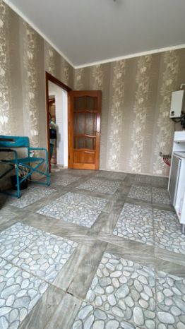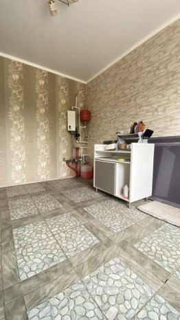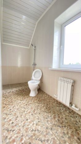 Первый этаж: сан узел с душевой и водонагревателем, кухня 15 квм с газовой установкой для приготовления пищи, большая комната.