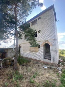На участке баня из газоблоков, хоз.постройки с двумя погребами, коптильня, 3-х этажный кирпичный дом в черновой отделке, скважины.