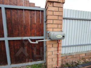 Территория огорожена по фасаду профлистом по периметру деревянной доской по стальным столбам. Въездные ворота распашные исполнительный механизм DoorHam. Открытие и закрытие с пульта.