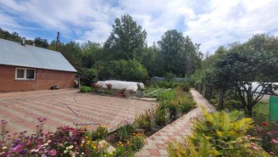 Благоустроенная территория: множество различных насаждений- туи, яблони, виноград, малина,клубника и тд. площадка под бассейн, дорожки -тратуарная плитка