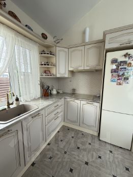 Большая ванная комната. Дополнительный туалет в котельной. Кухня с духовым шкафом,вытяжкой, встроенная посудомойка и холодильник. 2 кондиционера. Отопление газовое, теплые полы и две батареи под самыми большими окнами в гостиной. Система очистки и смягчения воды.
