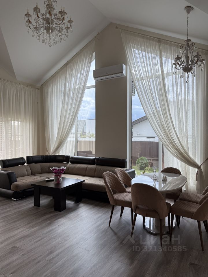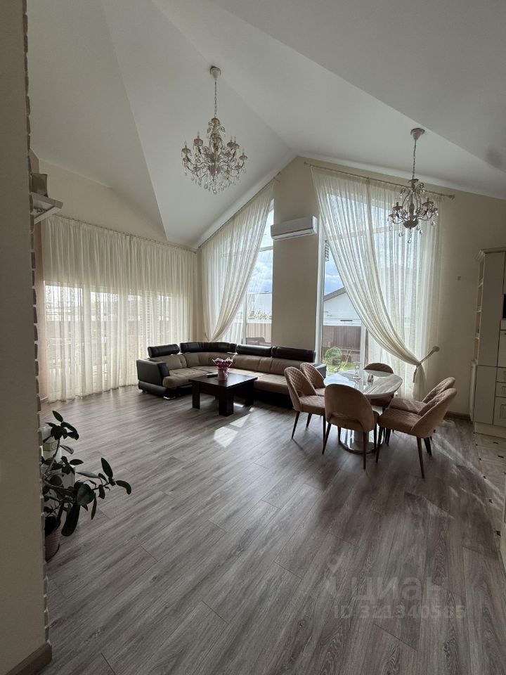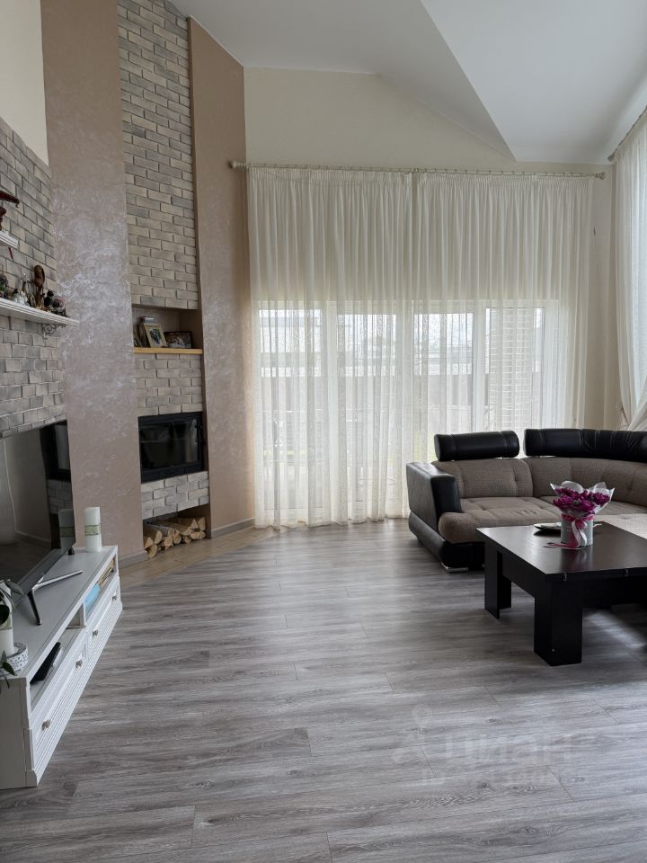 Дом очень уютный (почти все остается). Три комнаты-спальни. Большая светлая гостиная с вторым светом (высота потолков 5.7м) с очень большими и красивыми окнами в пол это дает очень много света в любое время года, действующий камин.