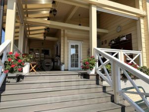 Основной (хозяйский) дом — 245м2 (187м + площадь веранд и крылец), 1-этажный.
