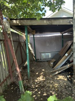 Крытое место под машину, засыпанное щебенкой.