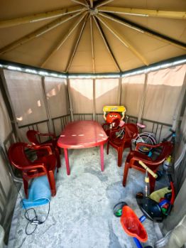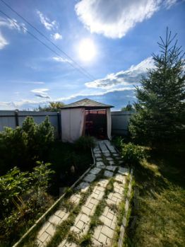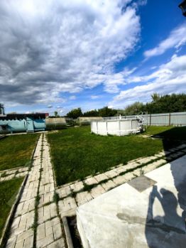 Участок двойной по 8 соток, по периметру забор из профлиста. Парковка на 3 авто, уличная беседка с освещением, 2 теплицы, газон, место под каркасный бассейн бетонная площадка, Бассейн Интекс 488 см., тоже остаётся.