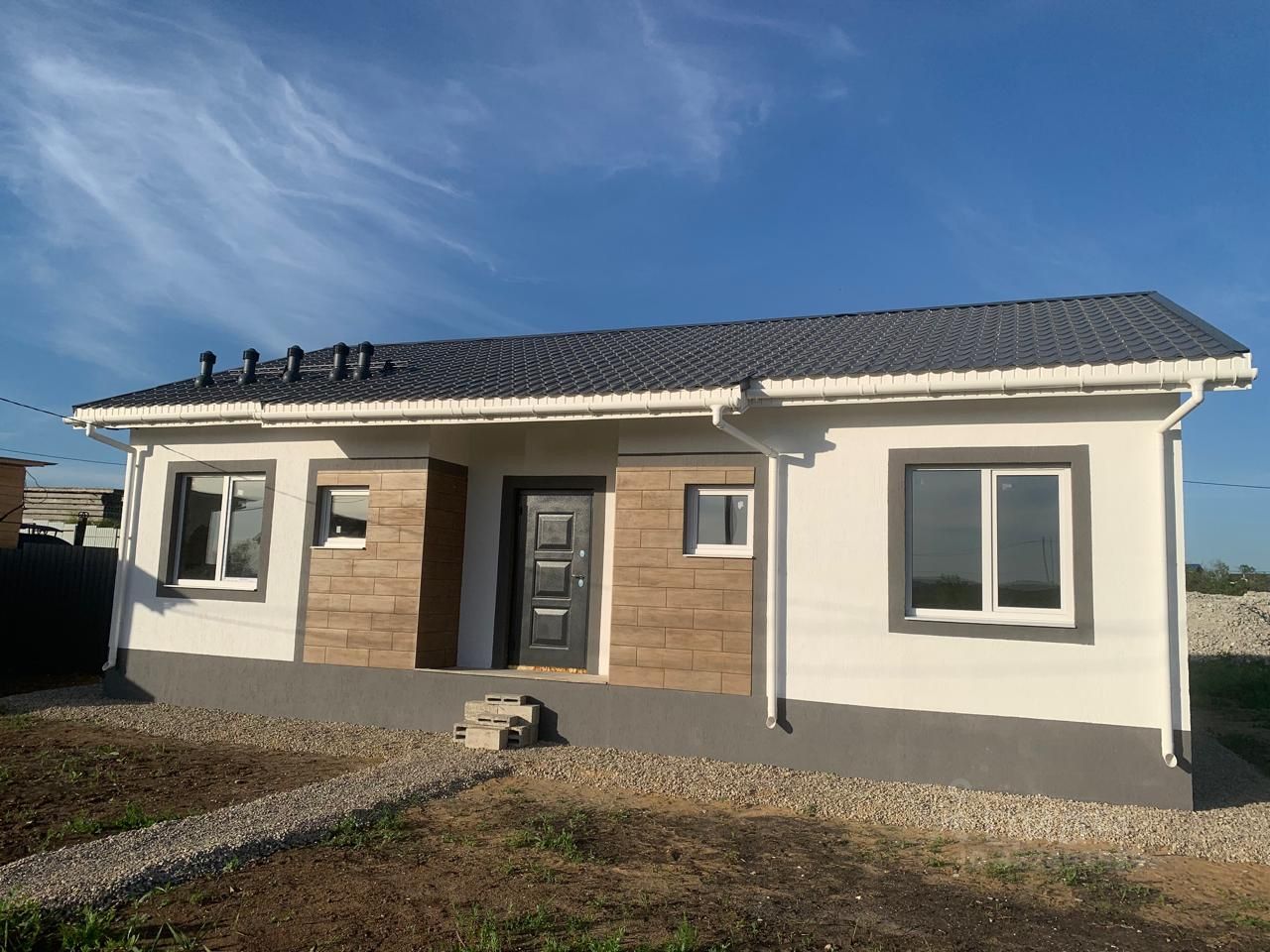 Планировка дома продумана до мелочей: три изолированные спальни площадью 11, 12 и 14.5 квадратных метров, просторная кухня-гостиная 27 квадратных метров с выходом на террасу( 11.4 квадратных метра), котельная и совмещённый санузел.