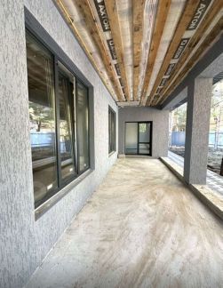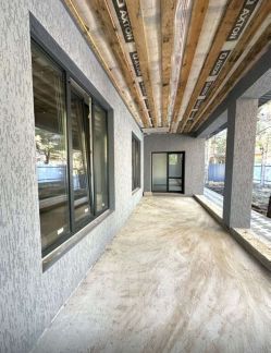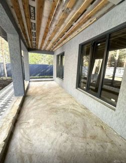 В доме просторная кухня-гостиная с выходом на очень просторную веранду под общей крышей, потолок веранды тоже утеплен т.к. планировалось остекление. Три спальных комнаты, ванная комната, санузел гостевой, гардеробная, котельная, прихожая, коридор. В доме выполнена предчистовая отделка, теплый пол.