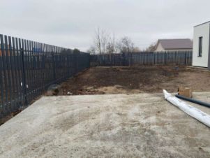 По периметру участка -металлический забор. Ворота откатные с электроприводом.ALUTECH RTO-500