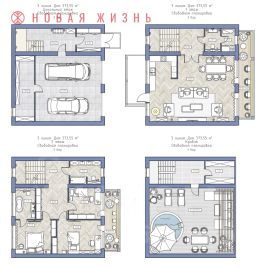 - цокольный этаж. Гараж на 2 машины, котельная, постирочная, техническое помещение.