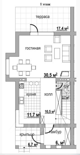 - 2-х этажный, S строения =170,80 кв.м., 1 этаж с выходом на террасу.