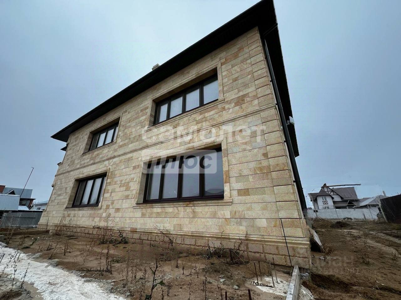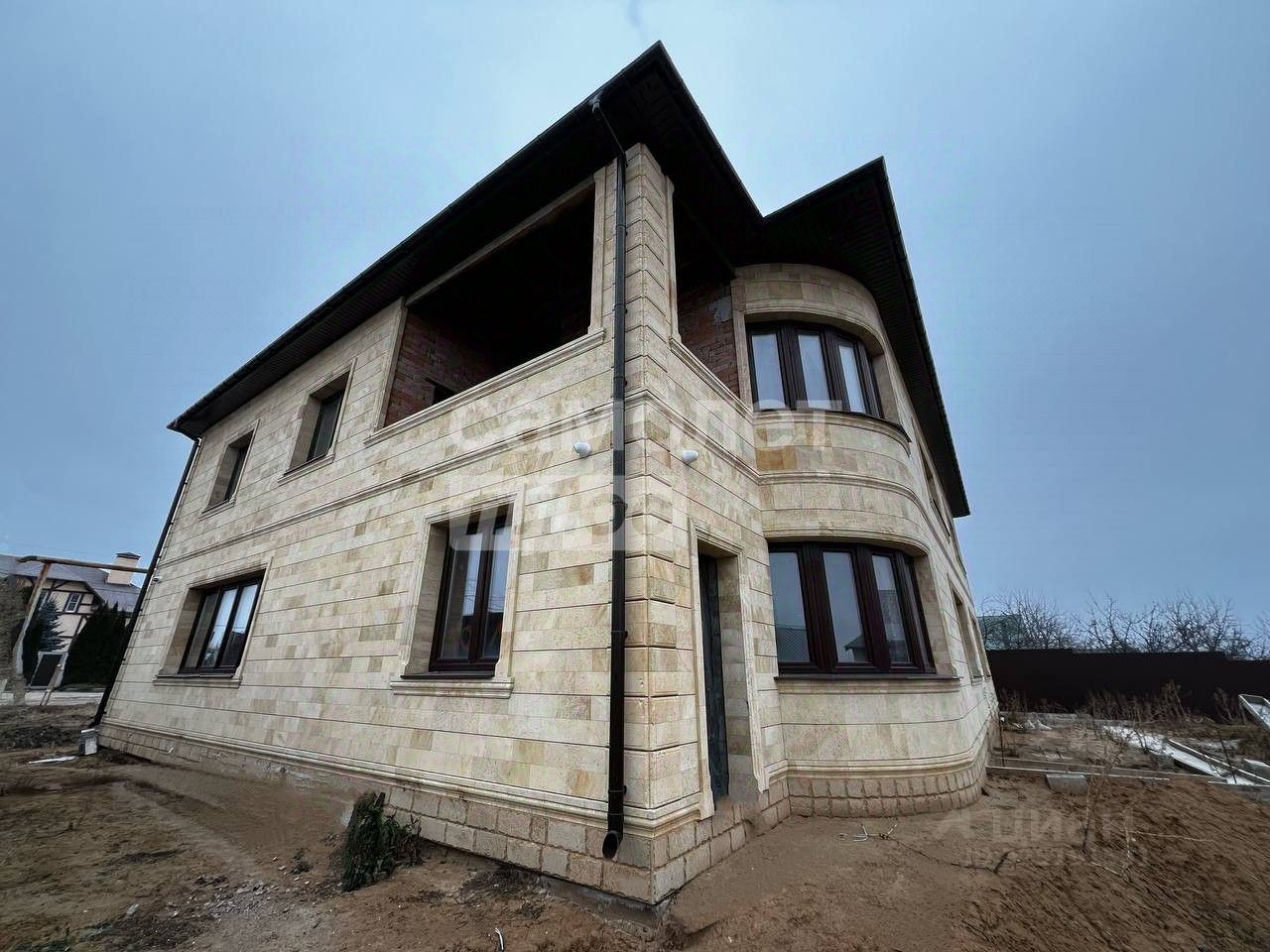 Стены: Многослойная конструкция: керамзитобетонный блок + утеплитель 50мм + кирпич + декоративная кладка из дагестанского ракушечника. Эстетика, прочность и энергоэффективность.