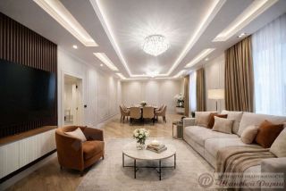 Просторная гостиная 45 кв.м — идеальное пространство для каминной зоны, лаунжа и семейных вечеров