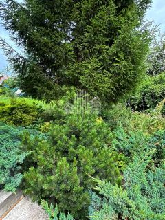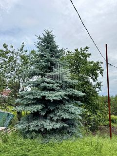 - из насаждений много хвойных: Ель голубая 2 шт, Ель русская 2 шт, Можжевельник казацкий, Сосна мопс, Туя шаровидная золотая, 2 клоновидных туи