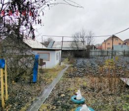 Участок прямоугольный, ровный, с плодовыми деревьями и кустарниками. На участке построены гараж на две машины, кирпичная баня, большая хозпостройка.