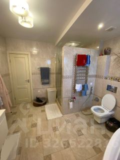 Просторная современная ванная комната: угловая ванна, душевая кабина, стильная сантехника.