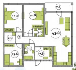 - 3 большие спальные комнаты и просторная кухня-гостиная