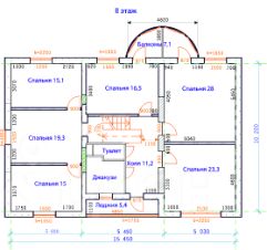 Эркер столовой в стенах круглой формы связан с гостиной 50м2 дизайнерским потолком 3м, окна в пол. 6 спален на 2 этаже. Везде розетки 220В с заземлением, гнезда антенны и интернета, несколько уровней освещения.