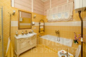 Сан/узел хозяйской спальни (стены и пол) выложен итальянской плиткой ручной работы Giallo Maya (royal).