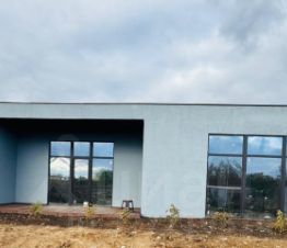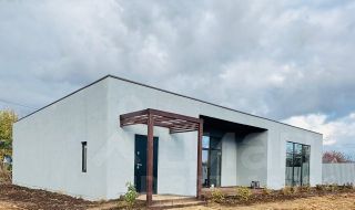 Строили дом из керамзита блока, 15 киловатт электроэнергии 380 вольт, крыша из дерева-плоская, из гостиный прекрасный вид в панорамные окна 4 метра и 3 метра, все коммуникации заведены в дом, газ проходит по границе.