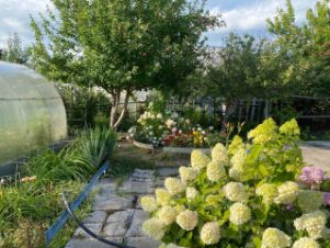 Участок ухожен, с плодородной землей и двумя теплицами для выращивания овощей. Имеются насаждения яблоки ,груши,вишня,малина ,абрикос. Также имеется выгребная яма для канализации. До ближайшего магазина легко добраться пешком, а до торгового центра благодаря доступности общественного транспорта.