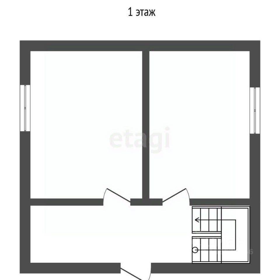 На первом этаже дома расположены две комнаты и кухня, на втором — просторная спальня с выходом на лоджию.