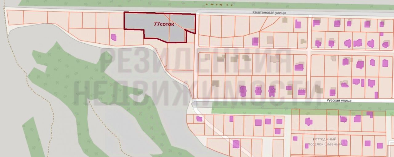 Арт. 132276852 Продается земельный участок ИЖС в коттеджном поселке "Славный", расположенный в Волжском районе Самары, с/п Лопатино, поселок Новоберезовский. Современный развивающийся поселок, с активной жилой застройкой, с достаточно широкими проездами и улицами, охраняемый физической охраной, доступом через шлагбаум, легким и быстрым доступом с трассы, закрыт от прямого шума деревьями. Участок, общей площадью 77,05 соток, для удобства, поделен на части, из которых: - 60 соток для строительства капитальных зданий и сооружений; - 17 соток для размещения парковок и въезда на территорию, газонов, элементов благоустройства, декоративных и культурных насаждений, мест отдыха, мангальных зон, некапитальных быстровозводимых сооружений, таких как беседки, площадки, склады бытовых материалов и т.д. Участок достаточно ровный, не заросший кустарниками и деревьями, не требует вложений на выравнивание и отсыпку грунтом. Также из преимуществ: - подключен к газу; - подключен к электричеству, выкуплено 15кВт (возможно увеличение); - подъехать можно по любой из улиц (Каштановая, Славная, Русская); - вдоль участка небольшая березовая посадка, также рядом лес и Новоберезовское водохранилище с пляжем. ГПЗУ предоставим по запросу, документы готовы к продаже. Просмотр в любое светлое время суток по предварительной договоренности.