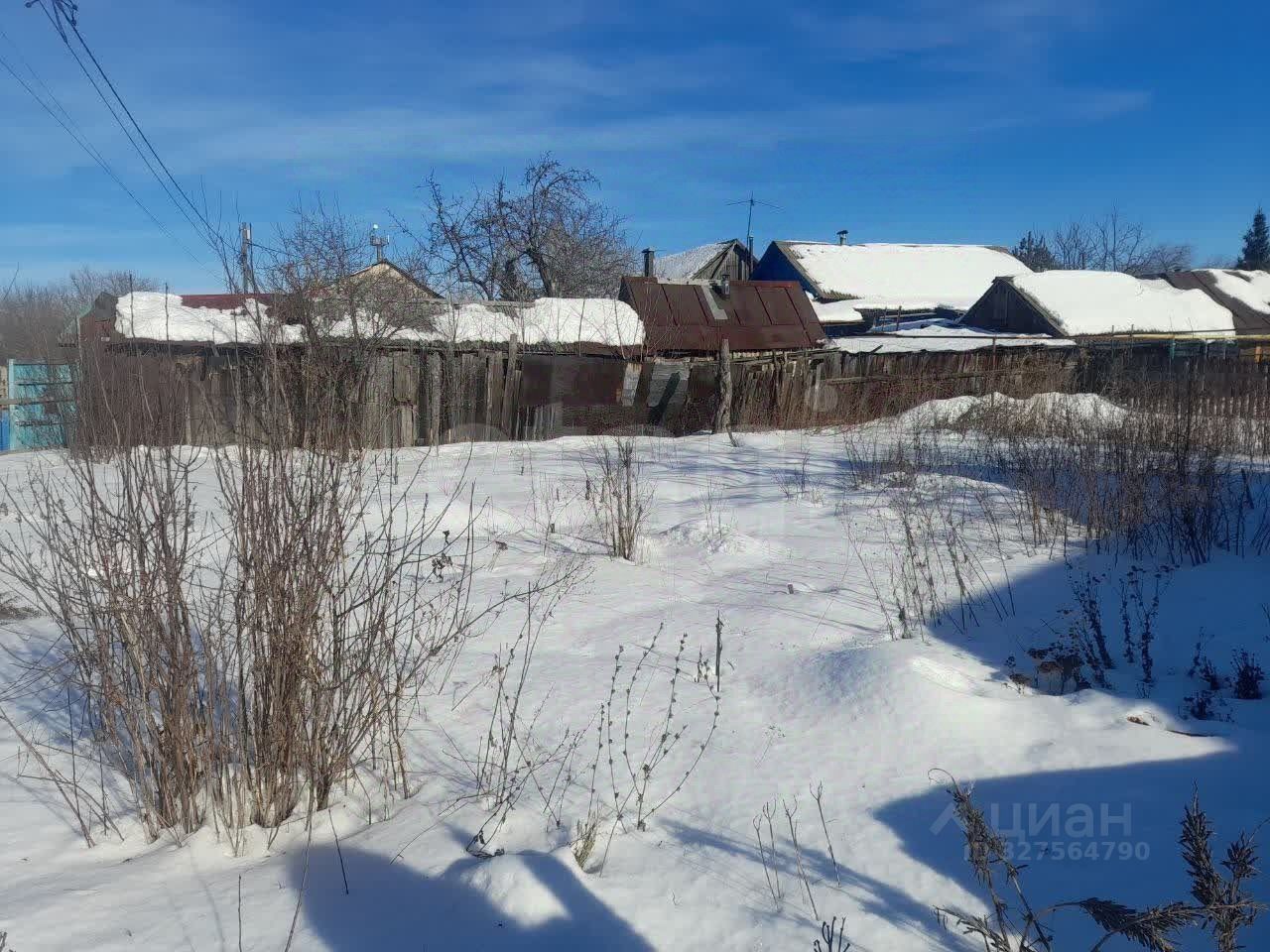 Территория полностью огорожена деревянным забором, ухожена и частично занята зелеными насаждениями, что дает простор для ландшафтного дизайна.