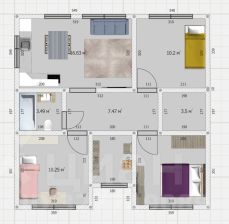 Площадь дома 70 м2, пocтpoeм по типовому проекту.