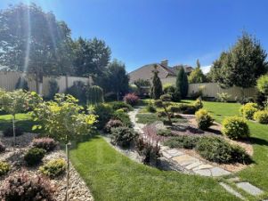 На участке: костровая зона с чашей и качелями, декоративный пруд с альпийской горкой и водопадом, спортивная площадка, ухоженный газон, многочисленные рокарии и декоративные насаждения. Ландшафтный дизайн и посадки растений выполнены профессионально по отдельному проекту. Имеется профессиональный автополив (две зоны), включая капельный, блок управления и регулировки, дополнительная компрессорная установка, наземные и прифасадные краны разбора воды. Дизайнерские фонари наружного освещения различной высоты по всему периметру участка и на фасадах зданий; подсветка растений. Забор выполнен по всему периметру участка на монолитной бетонной ленте.