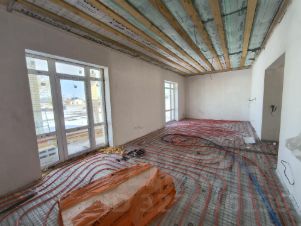 Панорамное остекление в кухне-гостинной с выходом на террасу. Грамотная раскладка системы отопления ТЁПЛЫЙ ПОЛ, на каждую комнату своя зона.