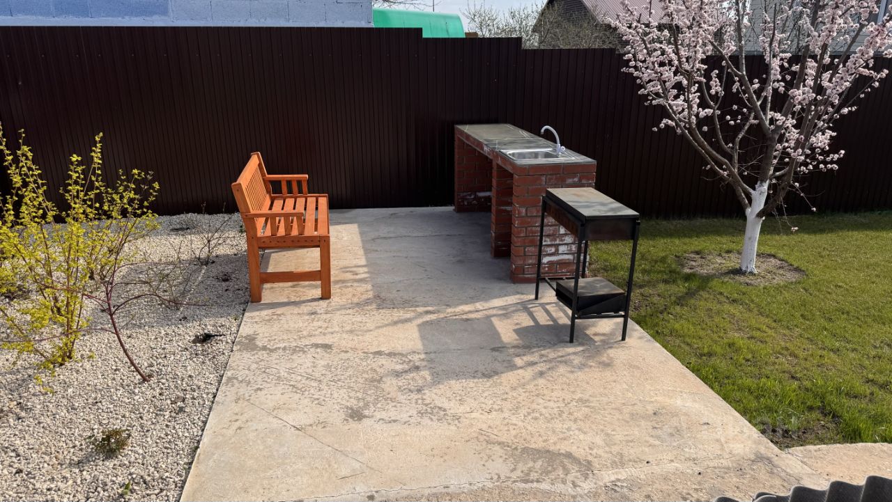 В огороде 2 теплицы, плодово-ягодные насаждения, бетонные грядки, большая парковка на 3 машины.