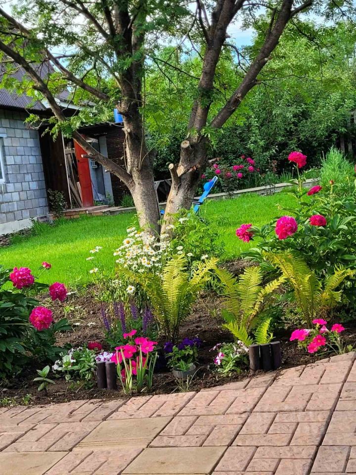 Теперь сам участок. Максимально комфортные и ухоженные 8 соток. На территории находится два дома. Основной дом 2 этажа площадью 80 квадратных метров, построенный нами в 2012 году. Второй дом 15 квадратных метров был при покупке участка. Перед основным домом ухоженный газон, высажены можжевельники и организован цветник.