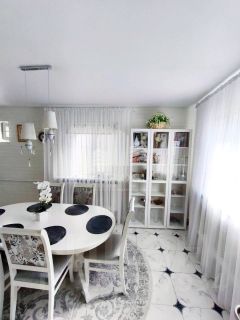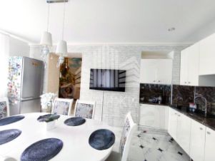 Оставляем всю мебель и технику: кухонный гарнитур, обеденная зона, холодильник, диван в гостиной, стиральную машинку, вся мебель на втором этаже остаётся в каждой комнате.