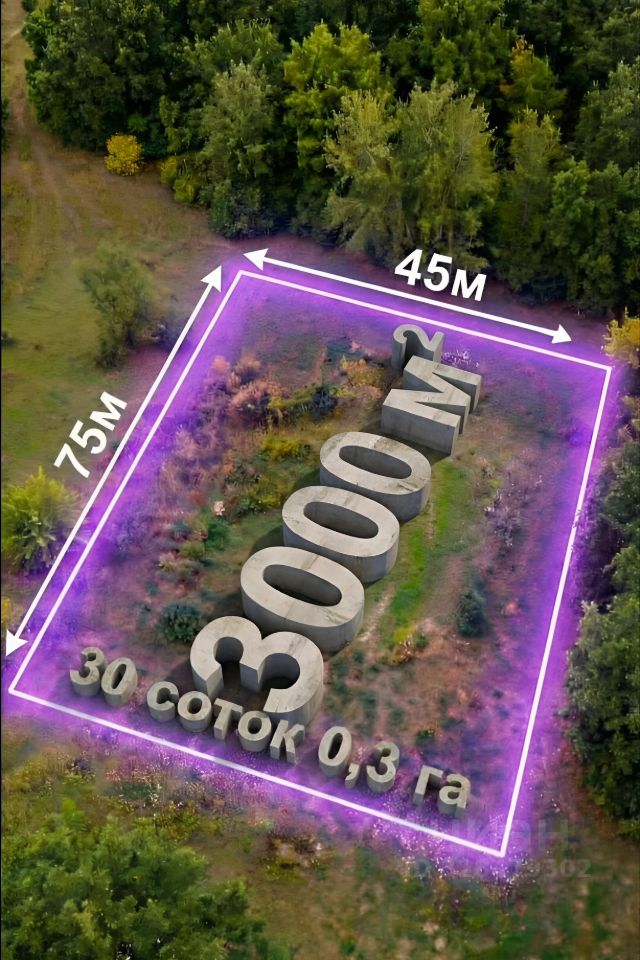Площадь земли 30 соток, 0,3 га, на учёте стоит с границами, право зарегистрировано в Росреестре.
