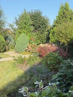 — Продуманный ландшафт: плодовые деревья, ягодник, многолетние цветы и декоративные кустарники.
